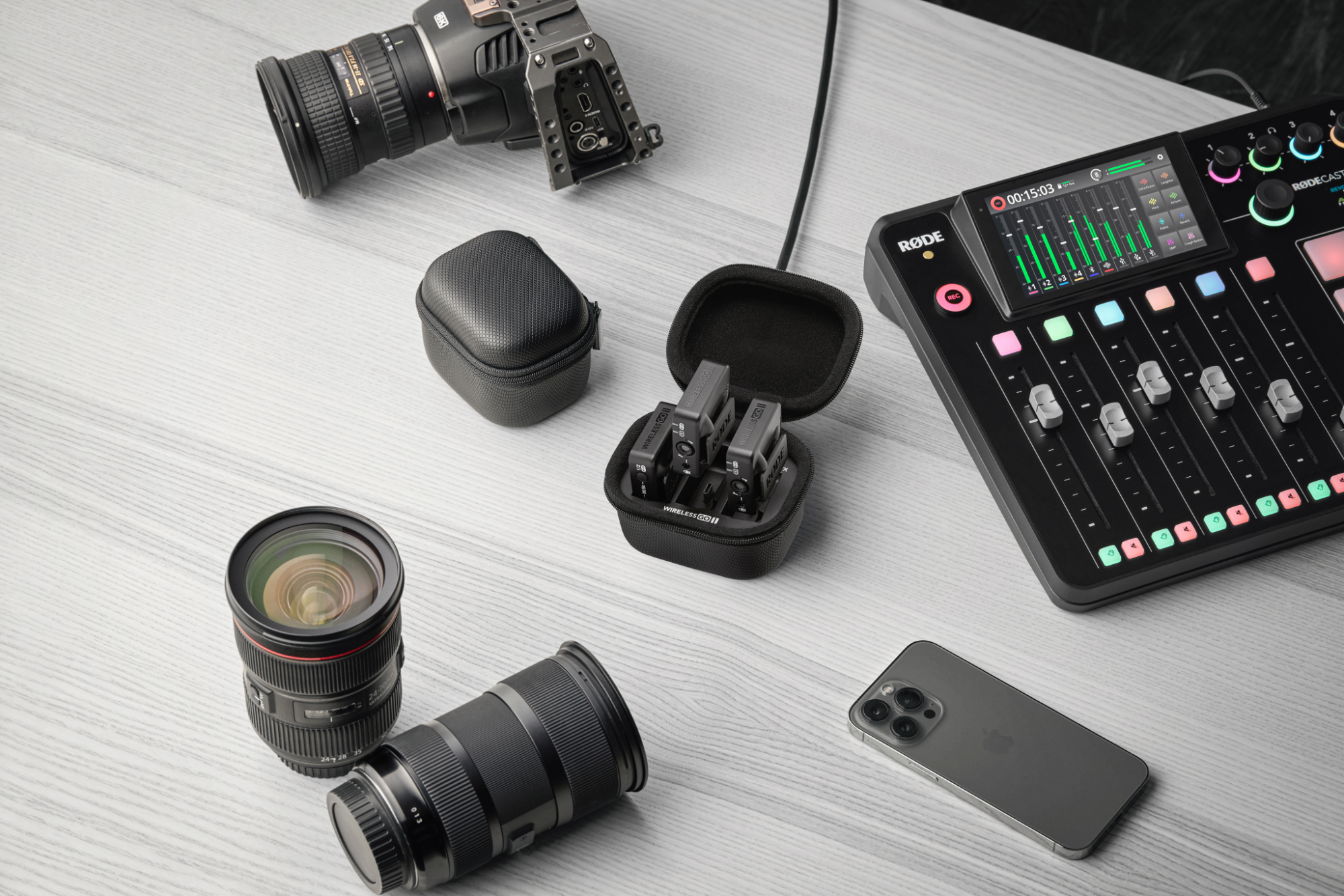 A RØDE Charge Case egy kényelmes megoldás a Wireless GO II vezeték nélküli készlet biztonságos tárolására, szállítására és töltésére útközben vagy otthon. Két adó és egy vevő fér el benne, és mindhárom egységet kétszer lehet teljesen feltölteni vele, így a töltő tok akár 21 órányi működést biztosít a vezeték nélküli rendszernek. A tartós külsővel és innovatív, cipzáras kialakítással rendelkező Charge Case nem csak feltölti a Wireless GO II szettet, de gondoskodik arról is, hogy otthon vagy két forgatás között is biztonságban legyen.