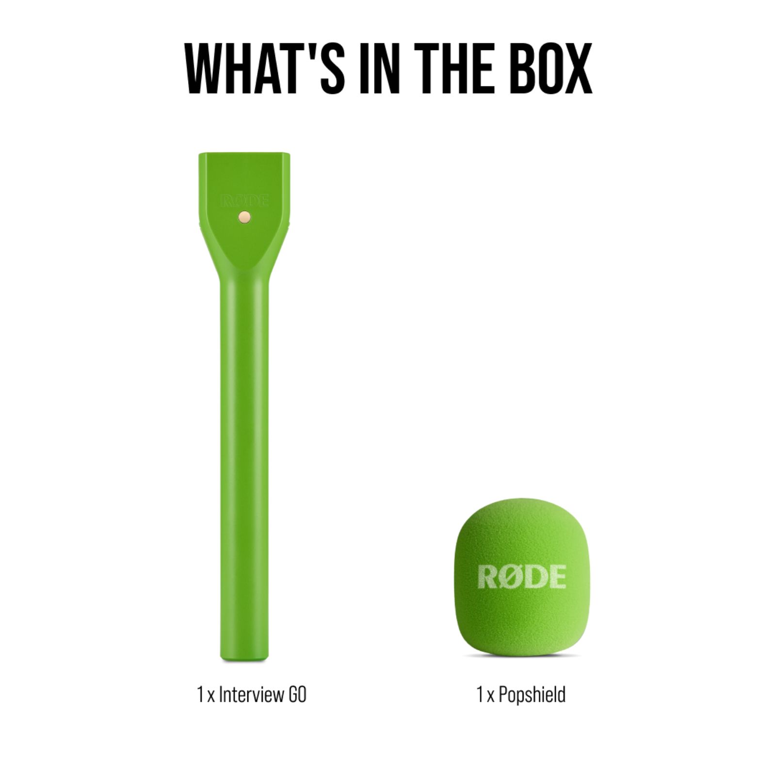 A RØDE Interview GO egy masszív mikrofon nyél, mely a Wireless GO II, Wireless ME, Wireless GO GEN3 és Wireless Pro vezeték nélküli rendszerek adójának kézi adaptereként működik. A nyél fejébe pattintva, a beépített mikrofonnal rendelkező adó vezeték nélküli kézi mikrofonná válik, így alkalmas lesz riporter mikrofonként történő használatra interjúk készítéséhez.