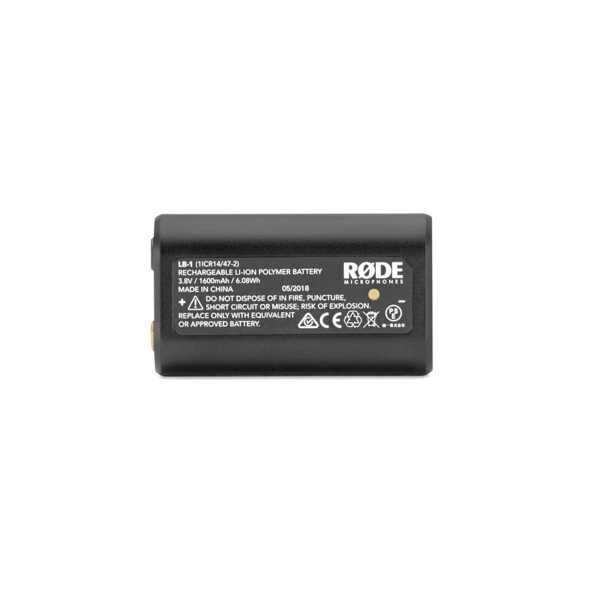 A RØDE LB1 Li-ion akkumulátor teljesen feltöltve 10 órányi üzemidőt biztosít a TX-M2 kézi adó számára, és 100 órányit a VideMic Pro+ videomikrofon számára. Az akkumulátor töltése az eszközökön keresztül, USB kábellel történik. A teljes töltöttség 3 órányi töltéssel érhető el.