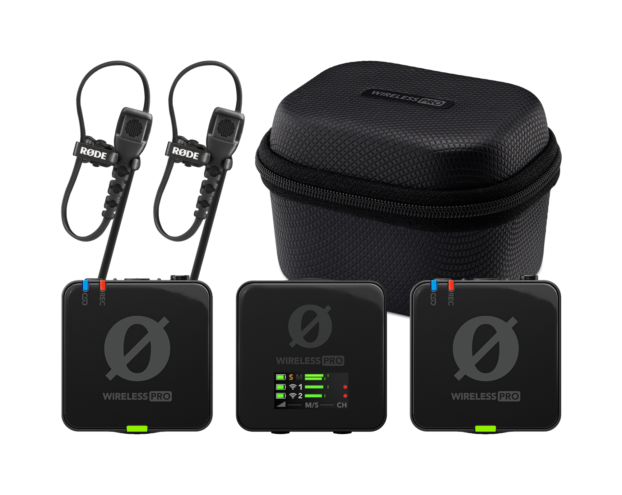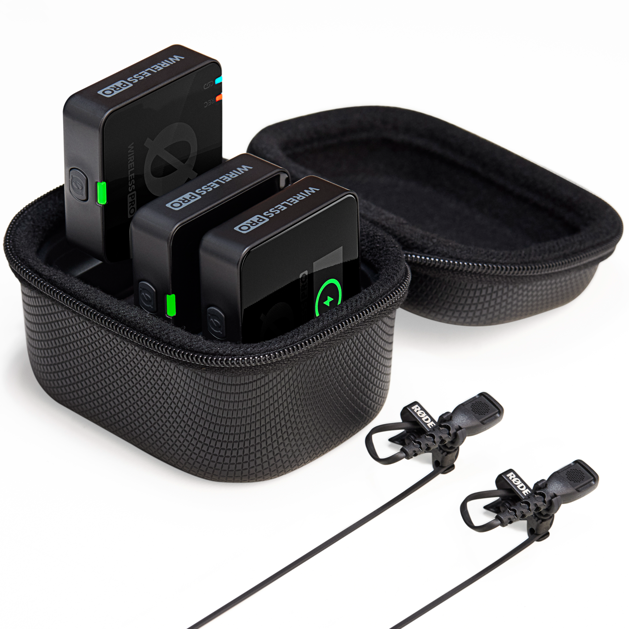 A Wireless PRO csomag alapkiszerelésben tartalmaz minden kiegészítőt, amire szükséged lehet a gyors beálláshoz, hogy minél előbb indíthasd a vezeték nélküli hangrögzítést. A csomag tartalmaz két professzionális Lavalier II csíptetős mikrofont, amelyek tökéletesek, ha a képi követelmények miatt minél inkább el kell rejteni a mikrofonokat, szőrös szélfogókat a kültéri használathoz, egy pár MagClip GO-t, hogy bárhová rögzíthessed az adókat, egy intelligens töltőtáskát és egy praktikus tartozéktáskát, amelyben biztonságosan tudod tárolni és hordozni a mikrofonokat, kábeleket és klipszeket.