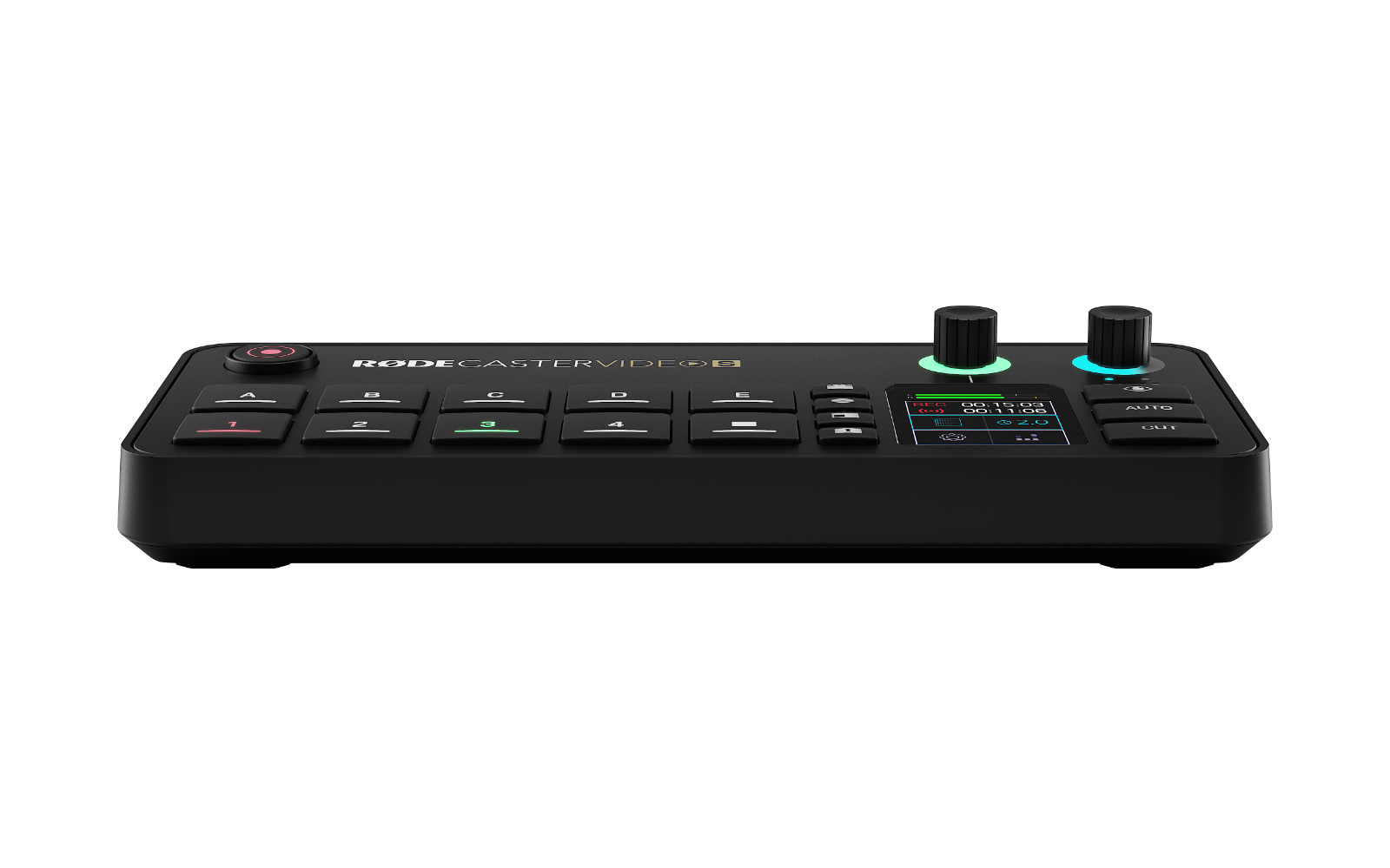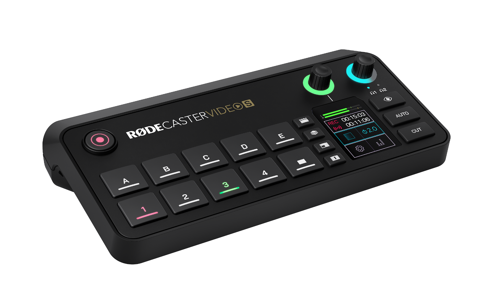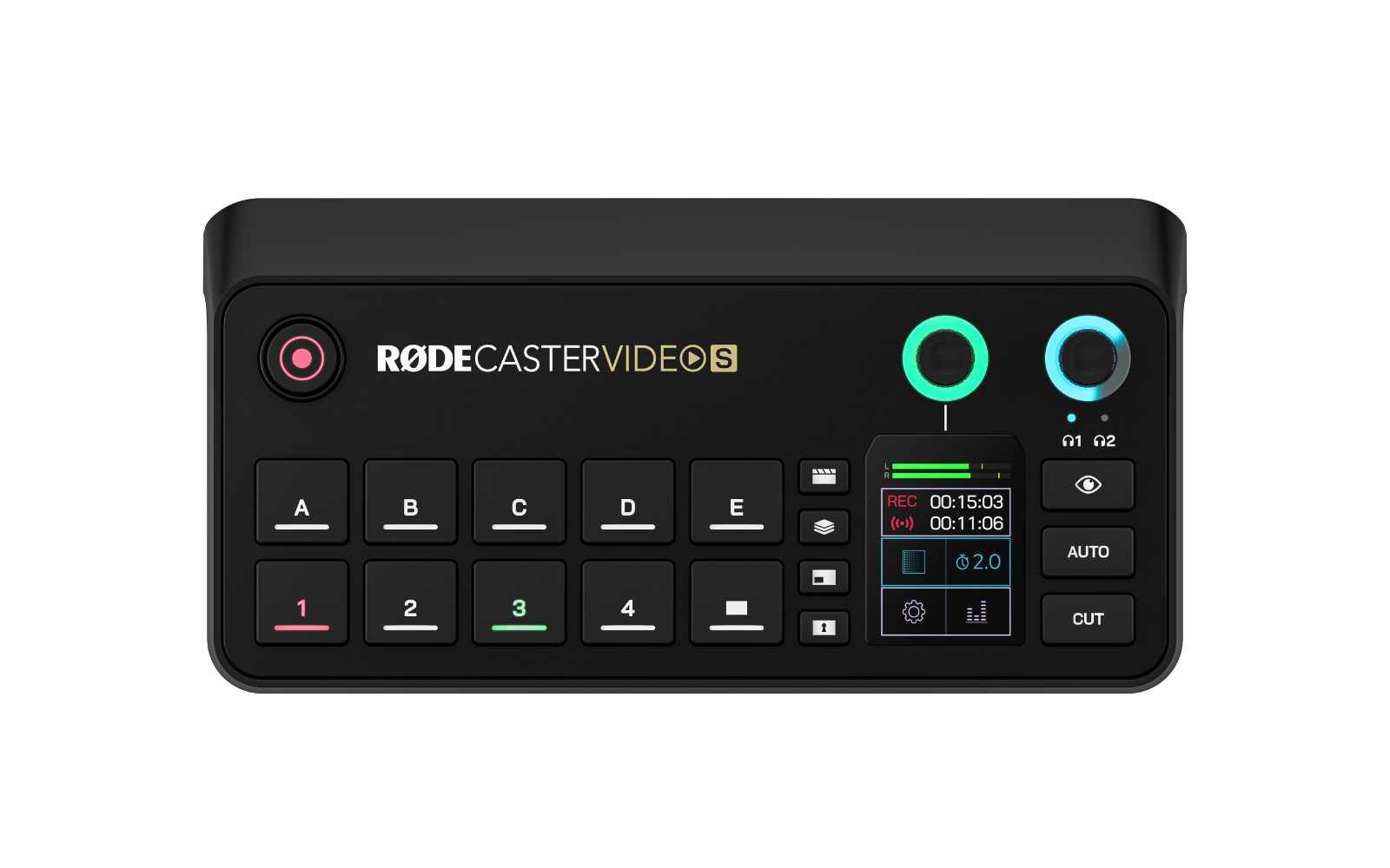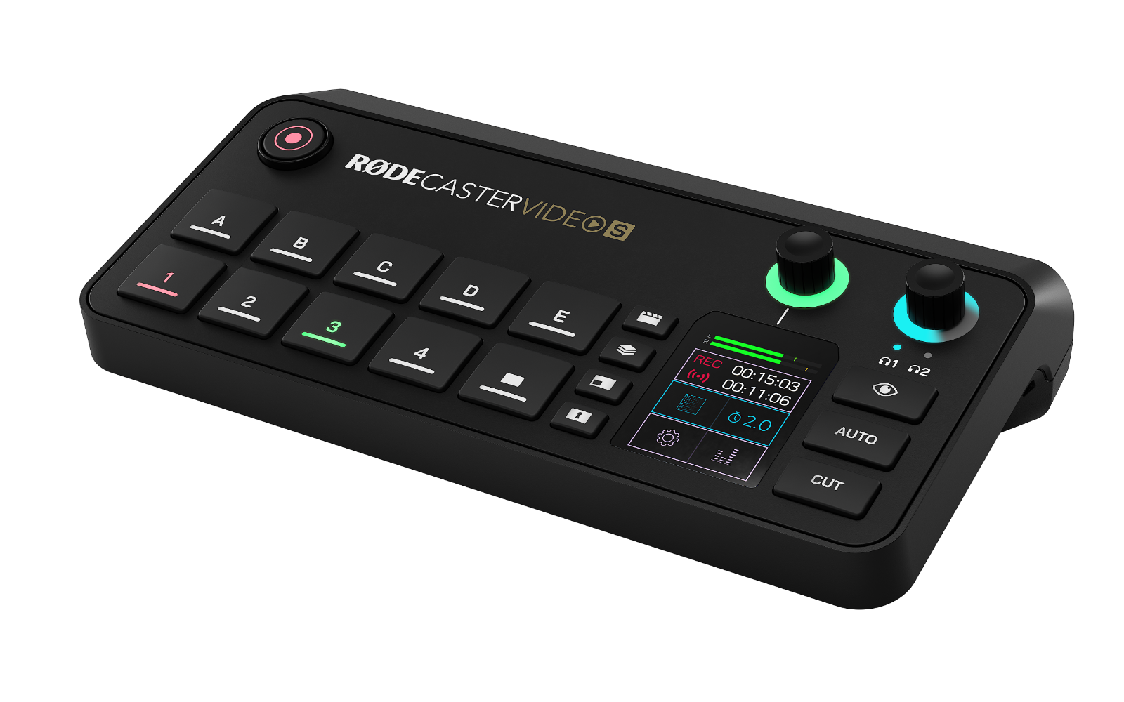 A RØDECaster Video S négy funkciógombjával azonnali hozzáférést biztosít a kreatív eszközök széles skálájához, így lehetővé teszi a fejlett videotechnikai funkciók eddig nem tapasztalt gyakorlati irányítását, valamint a grafikákhoz és a médiához való gyors hozzáférést.