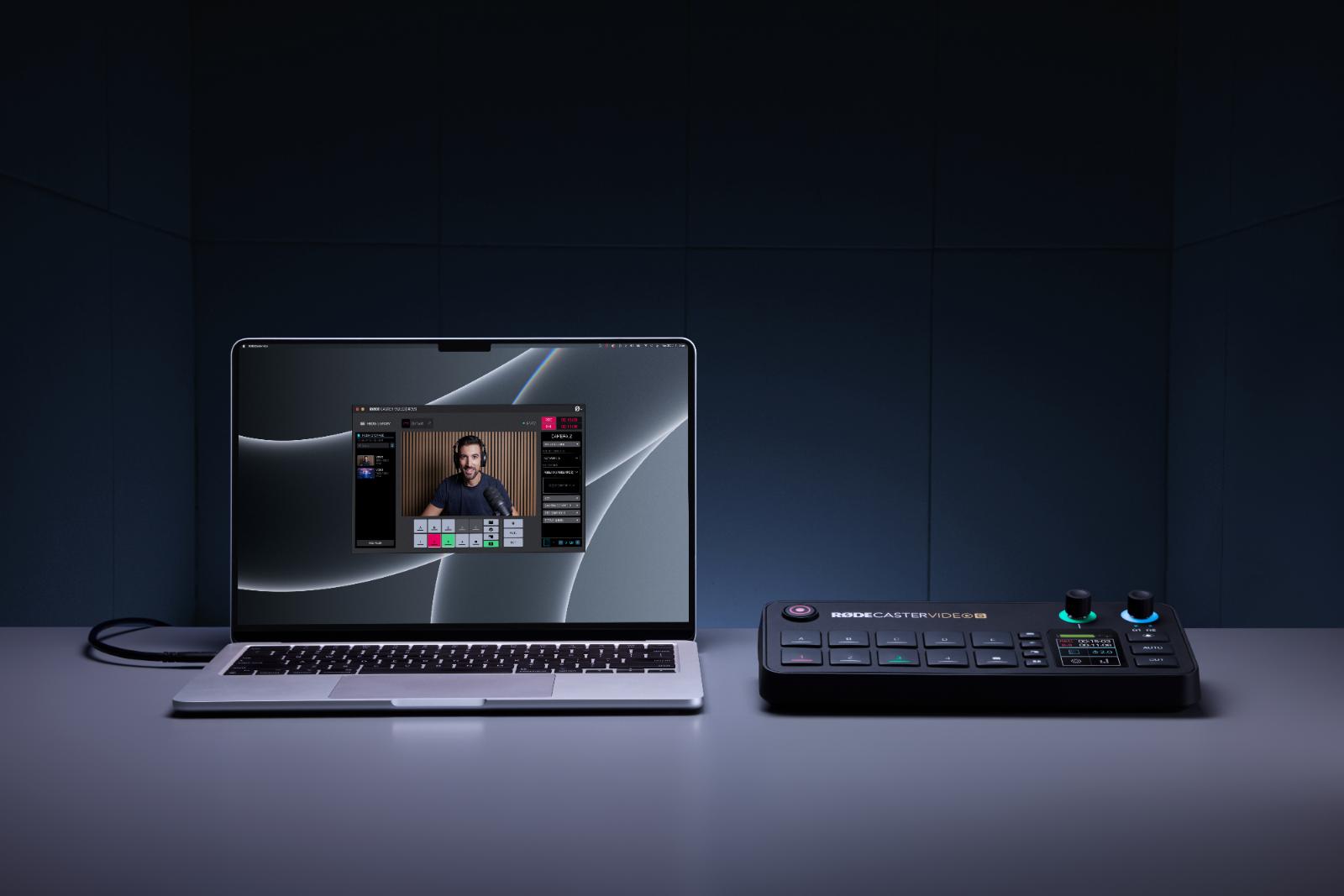 - Távvezérlés, felhasználó által hozzárendelhető grafika és média, egyéni jelenetépítés, hangkeverés és effektek, valamint egyéb fejlett konfigurációs lehetőségek a RØDECaster applikáción keresztül