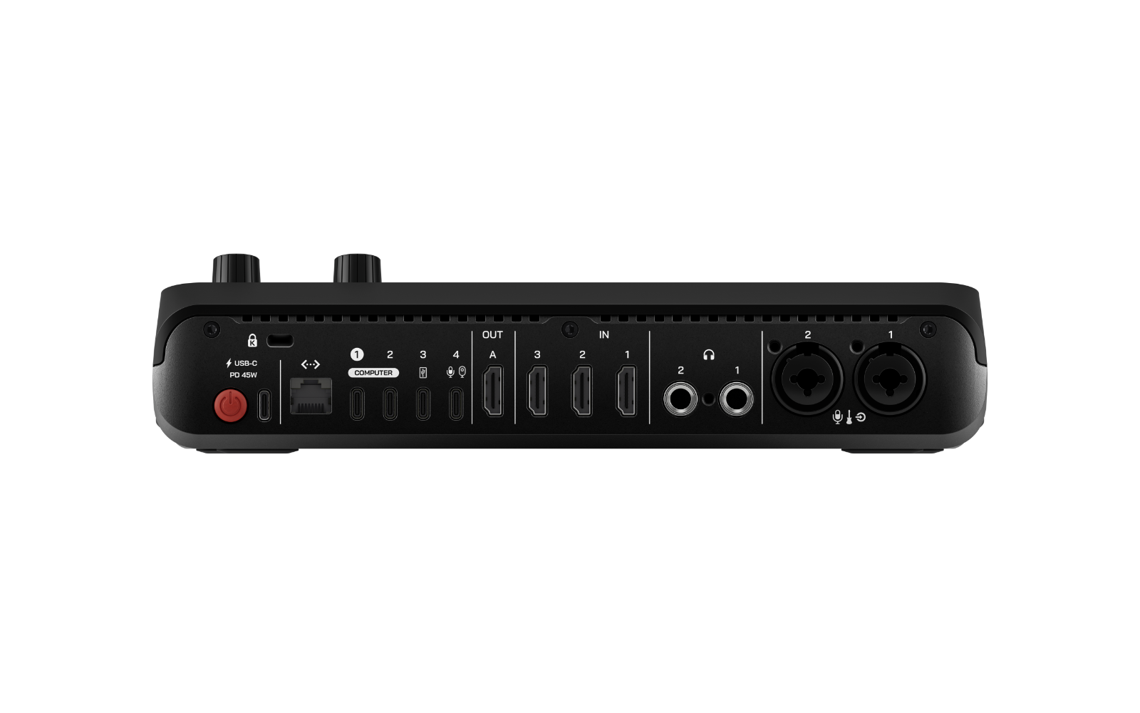 - Egy rugalmas USB-C port webkamerák és RØDE USB audio eszközök csatlakoztatásához, amelyek további videó- és hangforrásként használhatók